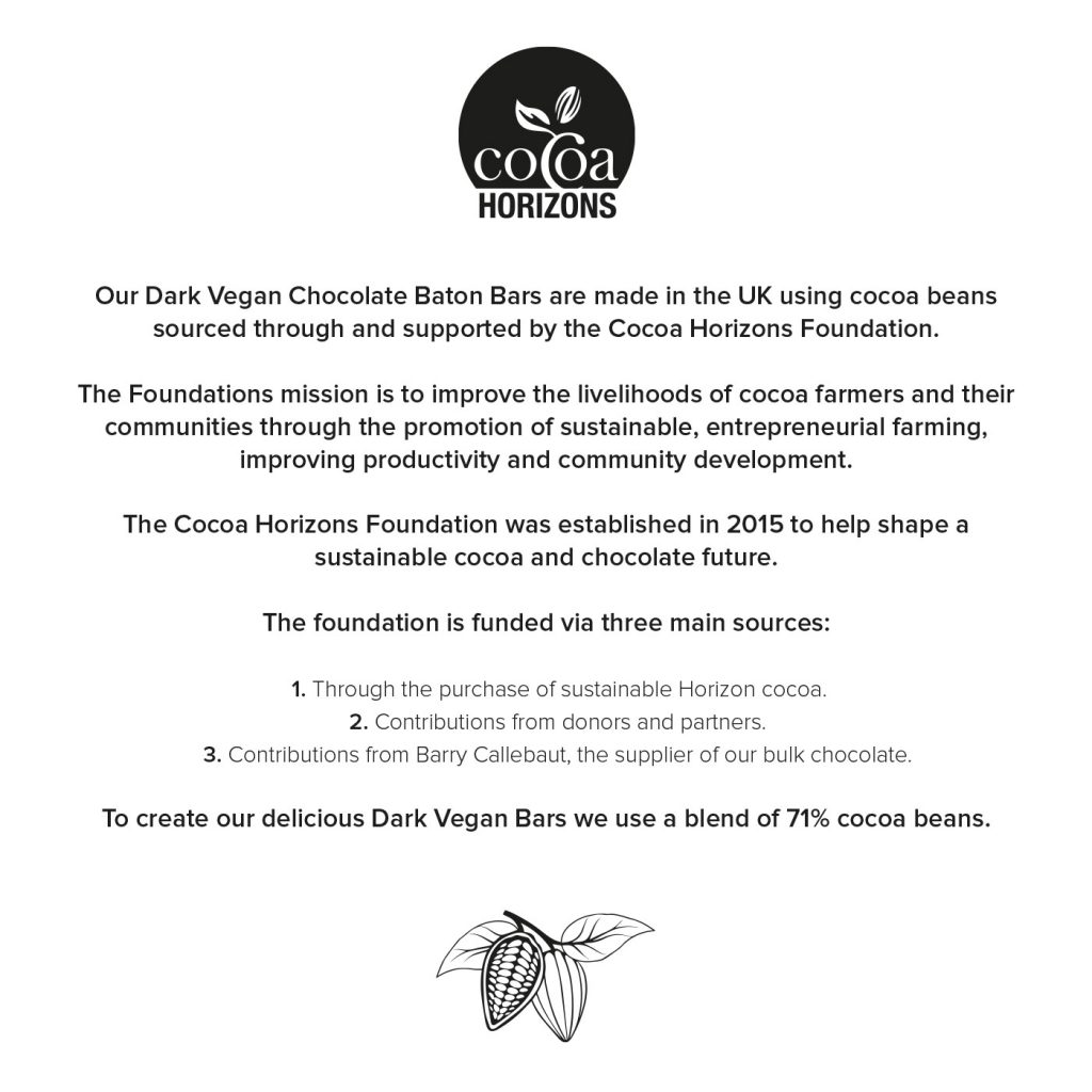 Eco 3 Baton Box comes filled with our hand crafted 3 Baton Vegan Dark Chocolate Bar.