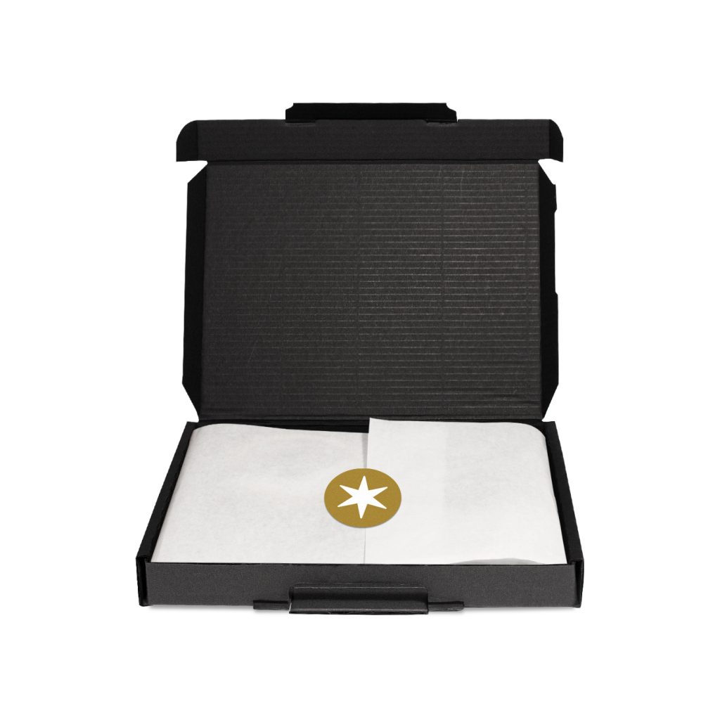 - Small round semi-gloss sticker to seal the tissue paper