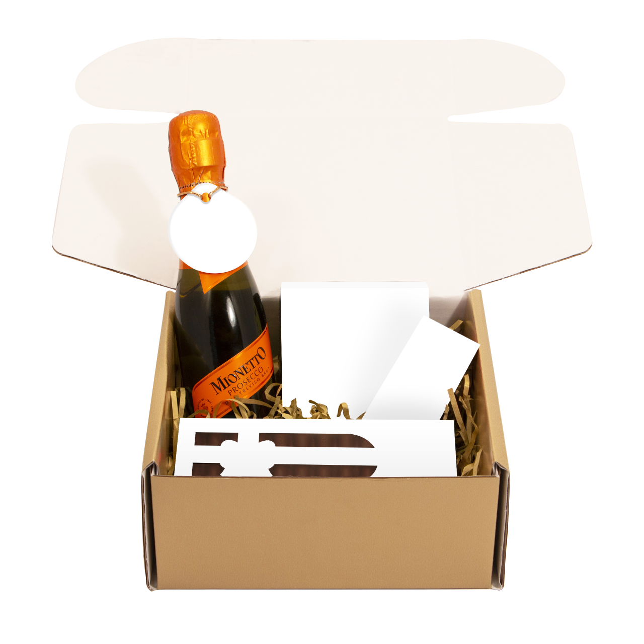 - Mini Prosecco – A 20cl bottle of bubbly with a sleek teardrop label, perfect for a personal toast or sharing a little sparkle.