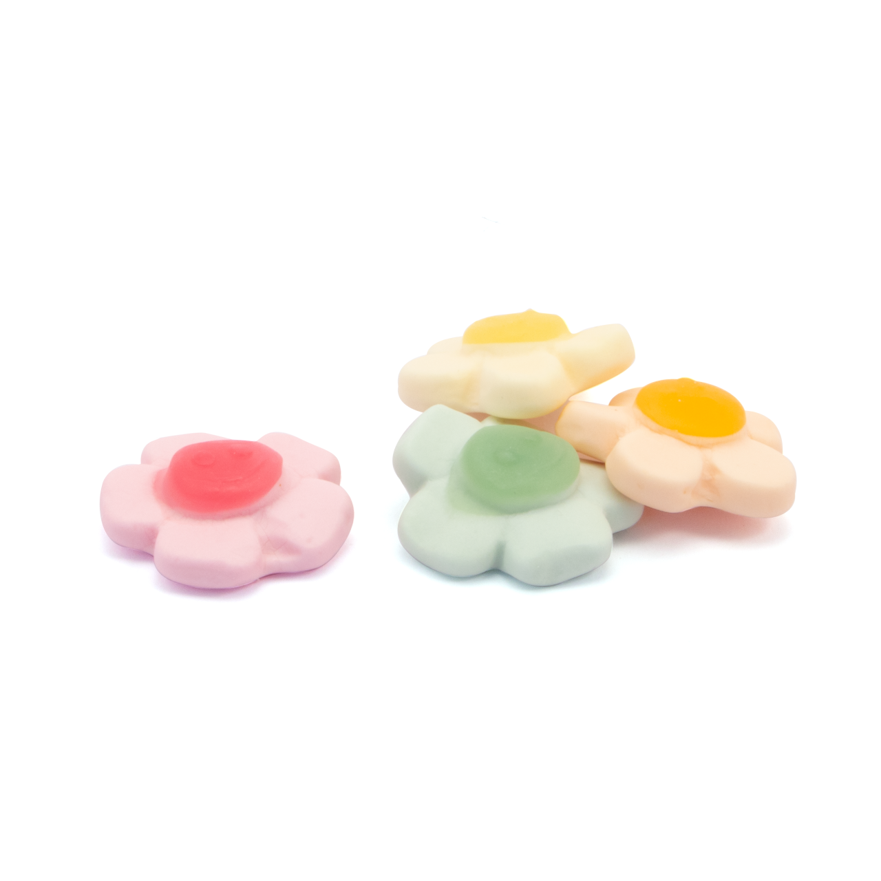 Happy Flowers Fruit Flavour Gummy Sweets INGREDIENTS: Glucose syrup,Sugar, Water, Pork Gelatine, Acids (Lactic, Malic, Citric), Gelling Agent (Pectin), Flavourings, Plant & Vegetable Concentrates (Black Carrot, Spirulina, Safflower), Colour (Curcumin, Paprika extract), Vegetable oil (Coconut), Glazing agent (Carnauba wax). ALLERGY ADVICE: WARNINGS: May contain Peanuts and Nuts